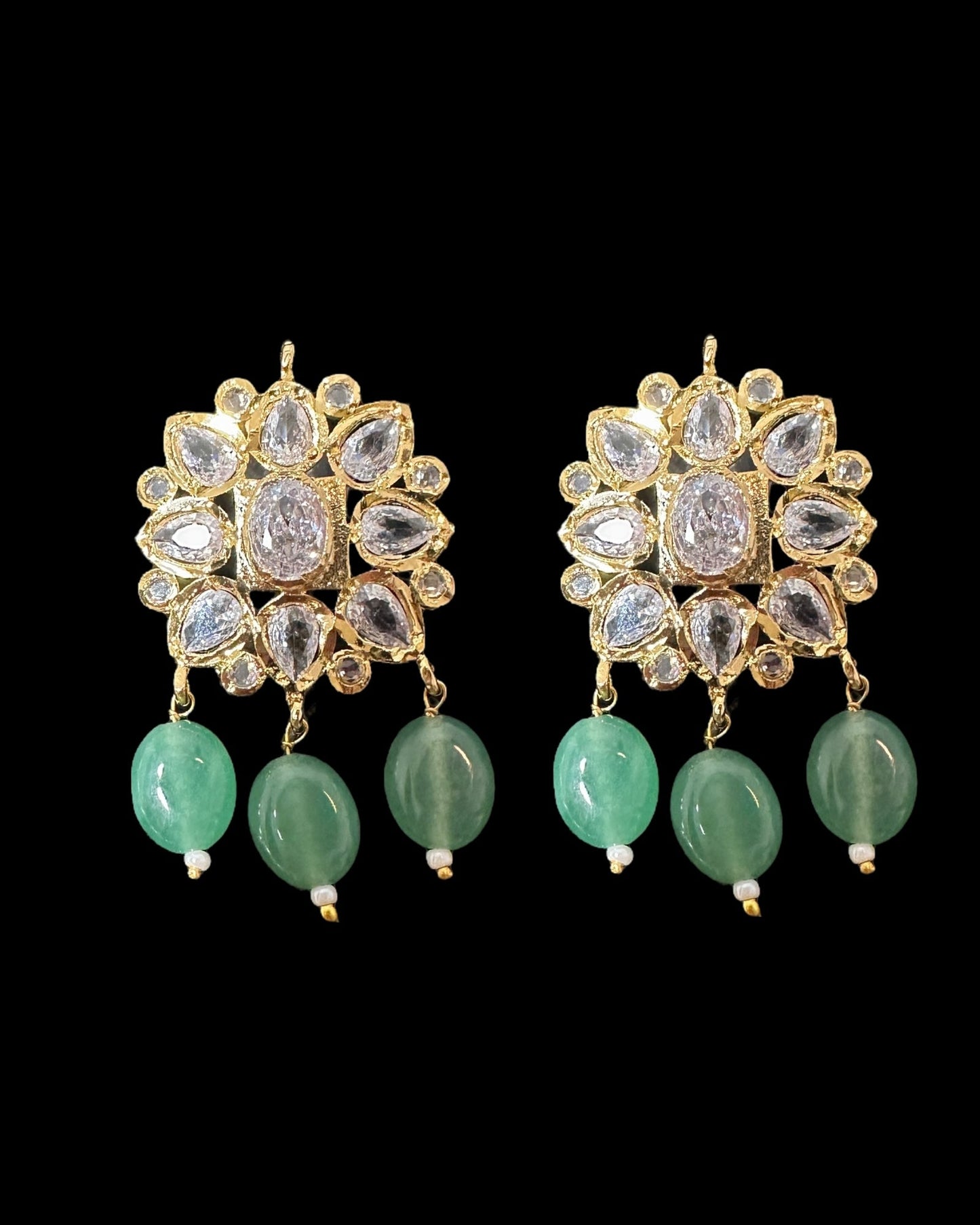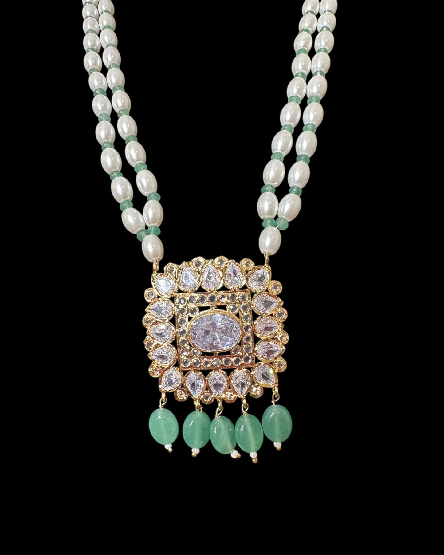 PS561 Hyderabadi pendant set with high quality zircon stones and light green beads ( SHIPS IN 2 WEEKS )