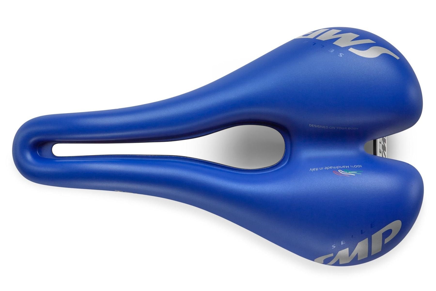 The TRK Saddle brings Selle SMP's unique ergonomic design to a more affordable price. The emphasis here is on comfort above all else. The TRK is perfect for recreational riders and commuters, featuring the same revolutionary dropped nose and large central cutout of the SMP road racing saddles with the addition of heavily cushioned padding and a wider shape for additional comfort and support. Carbon fiber infused Nylon-12 shell. AISI 304 tubular steel rails. Nap leather cover. Foamed elastomer padding. 280mm x 160mm. 395g. Black. Made in Italy.