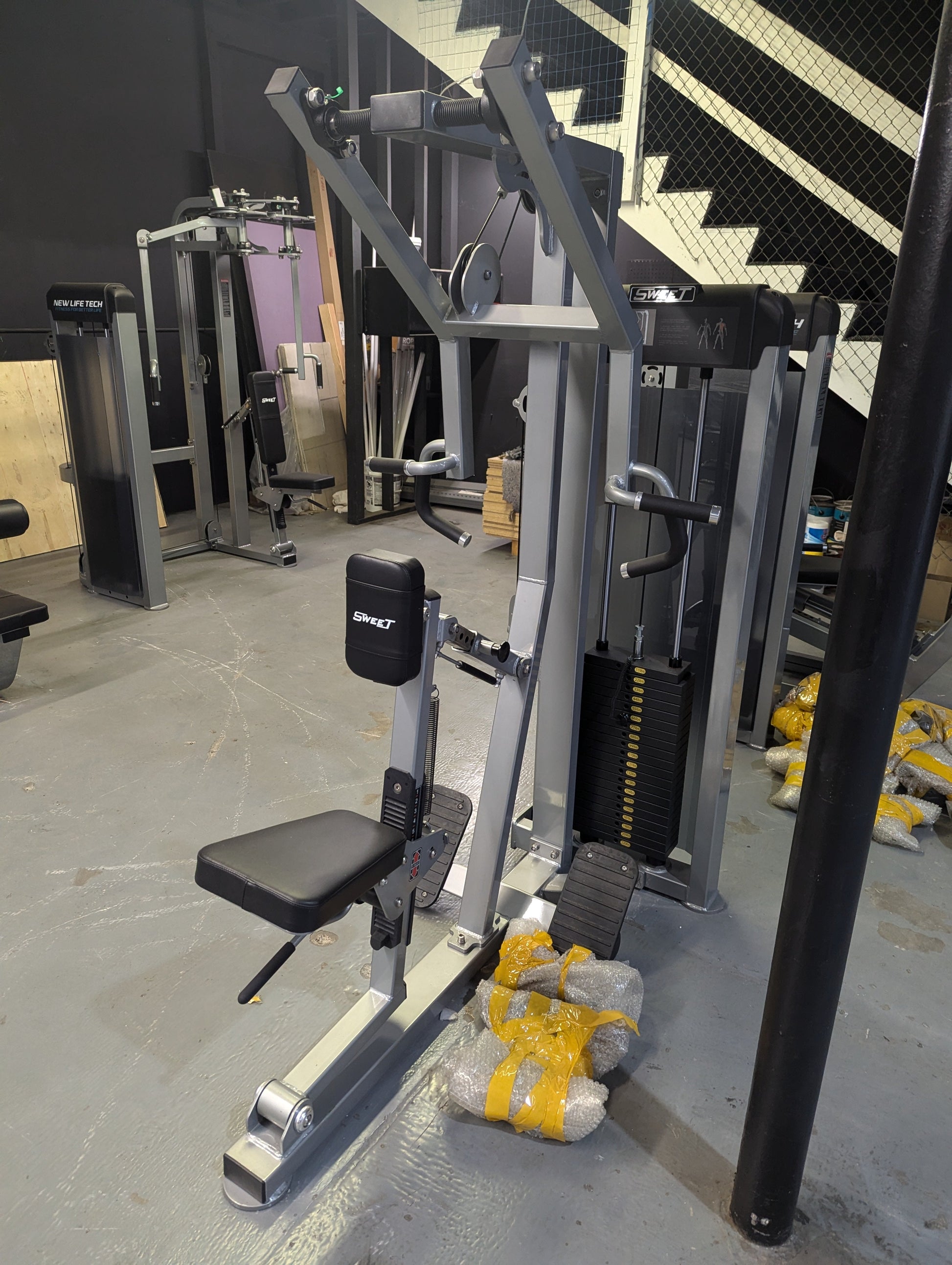 Introducing the Sweet Selectorized Seated Row, the ultimate machine designed to enhance your back strength and improve your overall upper body fitness. With its stylish silver finish, this robust piece of equipment not only looks great but also provides a highly effective workout experience.