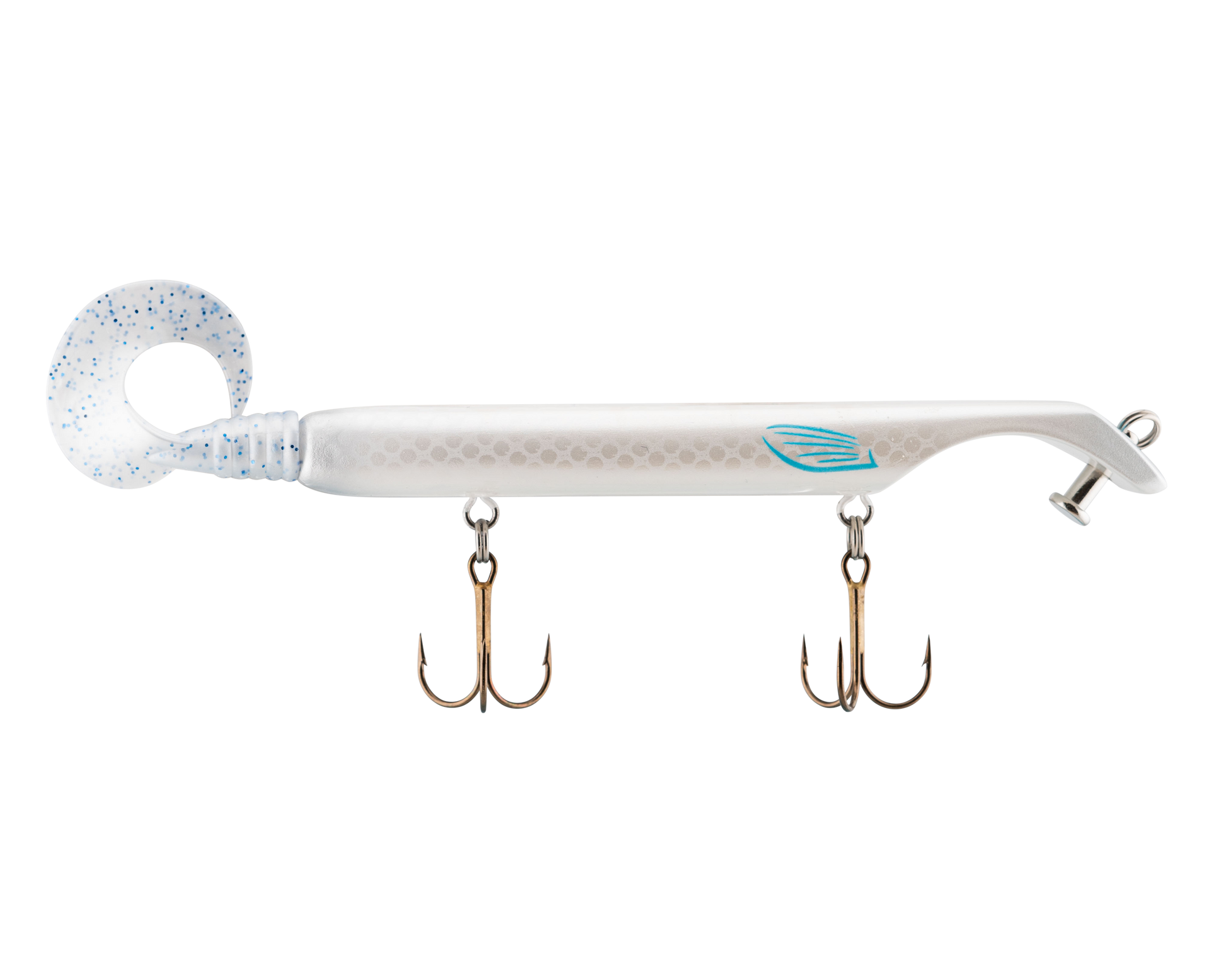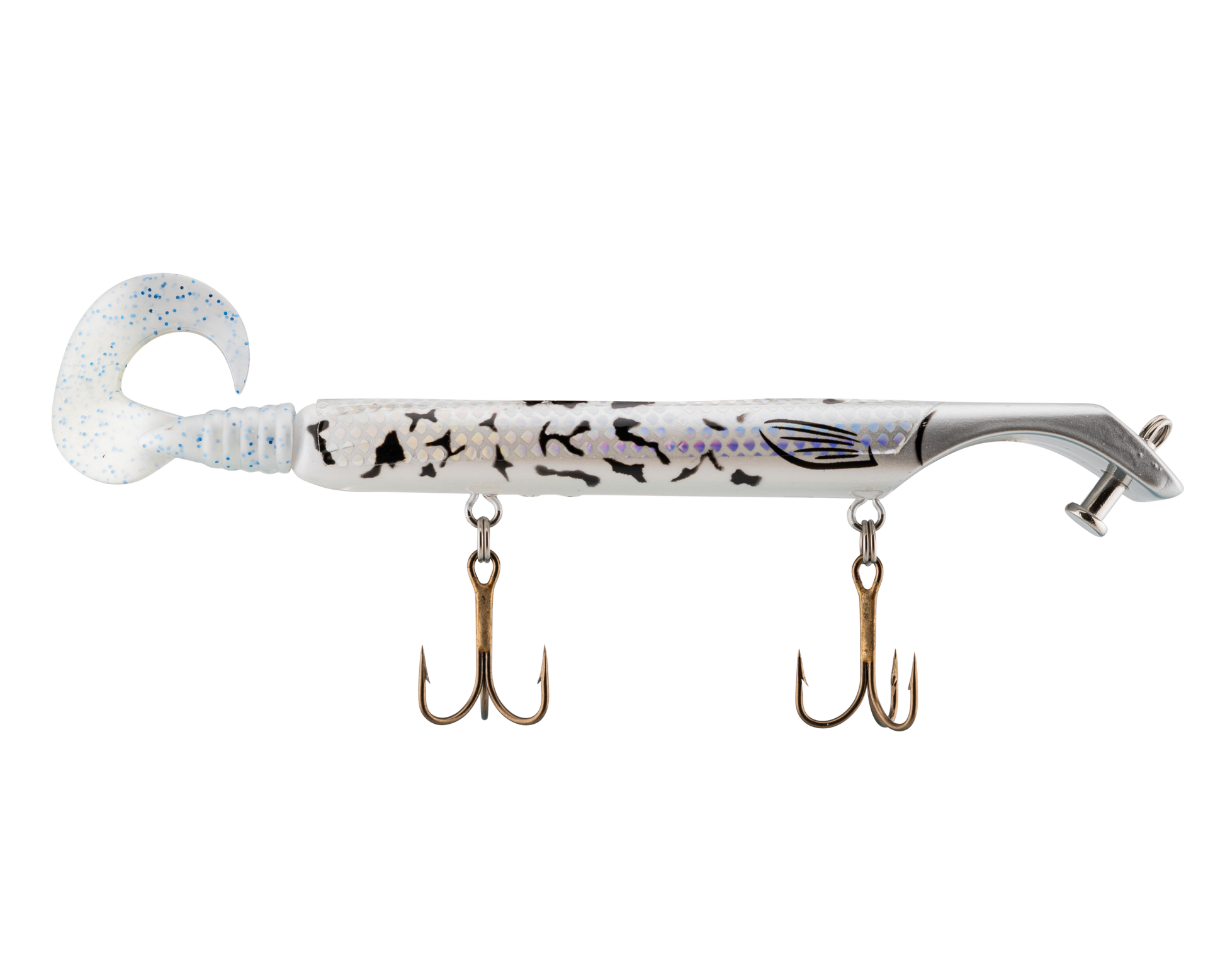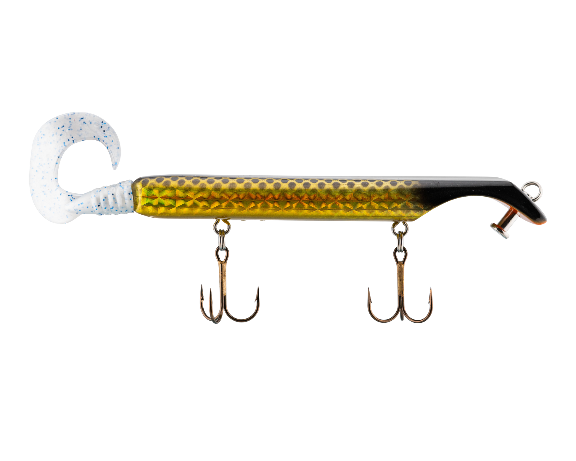 The Livingston Titan Junior provides the same easy, proven musky catching action as its predecessor. Titan Junior is perfect for cast-back, cold-front, shad-based, and early-season applications. This internally weighted model is intended for shallow presentations near shoreline weeds and structure. Apex predators can't resist the dive and rise action coupled with its wobble on the pause. The Titan Junior is the perfect presentation for Musky, Pike and other predatory game fish. The Titan's revolutionary design is the brainchild of acclaimed Musky Fishing guide Steven Paul and the Livingston Lures team. Their goal was to design a lure that works without so much WORK, allowing anglers to focus on what's important: putting fish in the net. The Titan Junior can be controlled in a simple reel-pause-stop fashion to achieve the classic jerk bait presentation or operated with rod taps and pulls to make the lure dive and rise in new and exciting ways. The Titan Junior comes with an easily replaceable corkscrew-mounted soft tail.