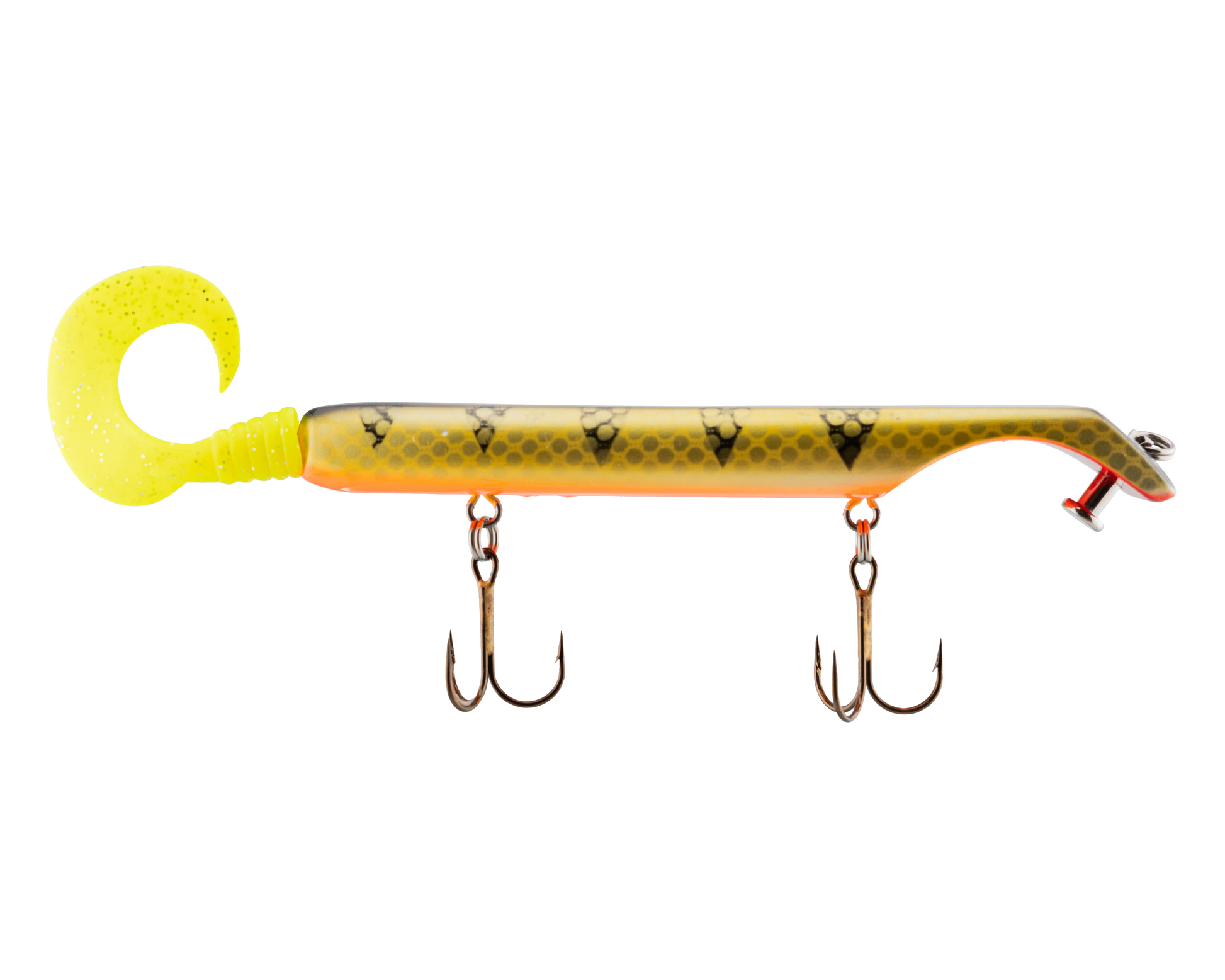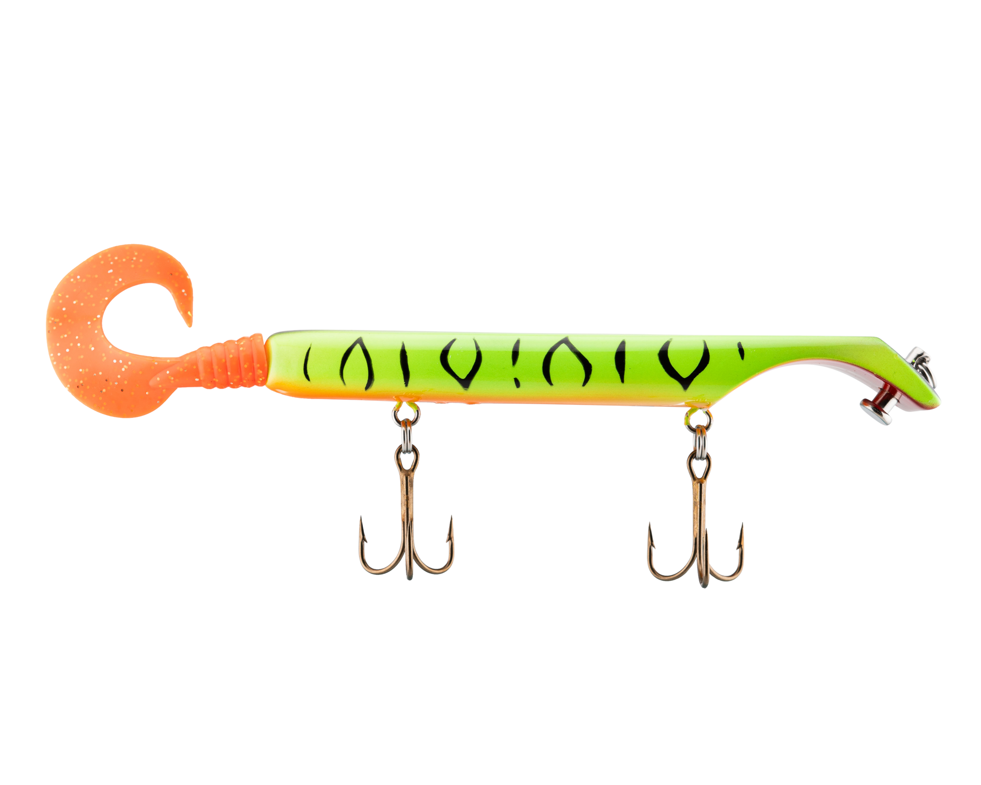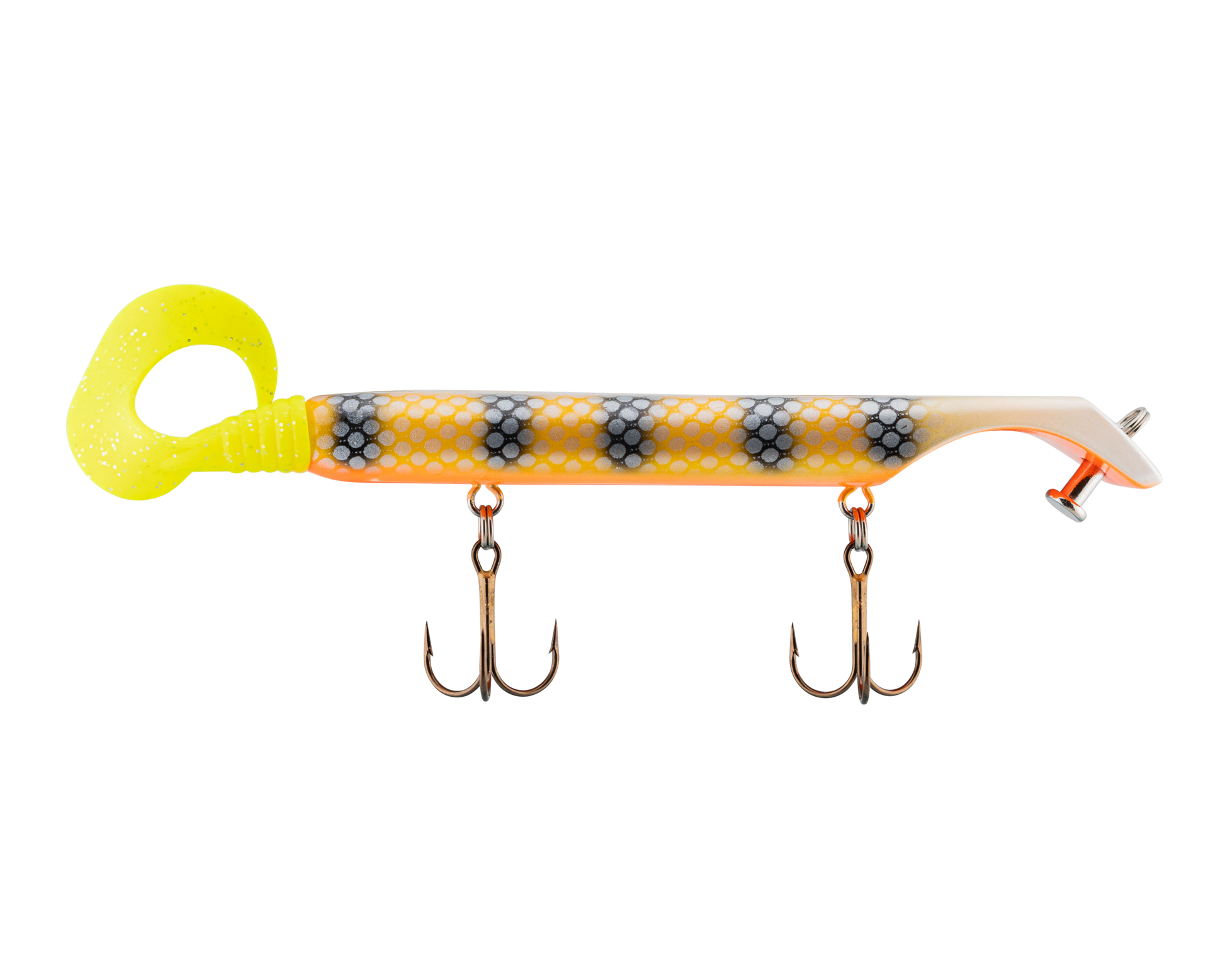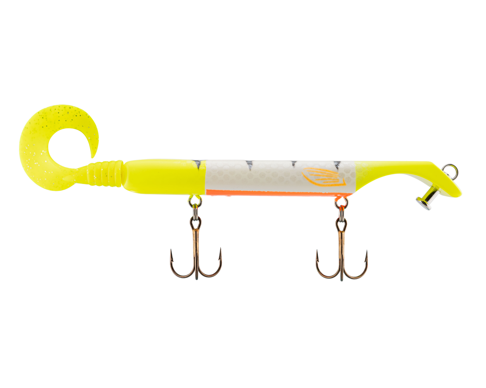 The Livingston Titan Junior provides the same easy, proven musky catching action as its predecessor. Titan Junior is perfect for cast-back, cold-front, shad-based, and early-season applications. This internally weighted model is intended for shallow presentations near shoreline weeds and structure. Apex predators can't resist the dive and rise action coupled with its wobble on the pause. The Titan Junior is the perfect presentation for Musky, Pike and other predatory game fish. The Titan's revolutionary design is the brainchild of acclaimed Musky Fishing guide Steven Paul and the Livingston Lures team. Their goal was to design a lure that works without so much WORK, allowing anglers to focus on what's important: putting fish in the net. The Titan Junior can be controlled in a simple reel-pause-stop fashion to achieve the classic jerk bait presentation or operated with rod taps and pulls to make the lure dive and rise in new and exciting ways. The Titan Junior comes with an easily replaceable corkscrew-mounted soft tail.