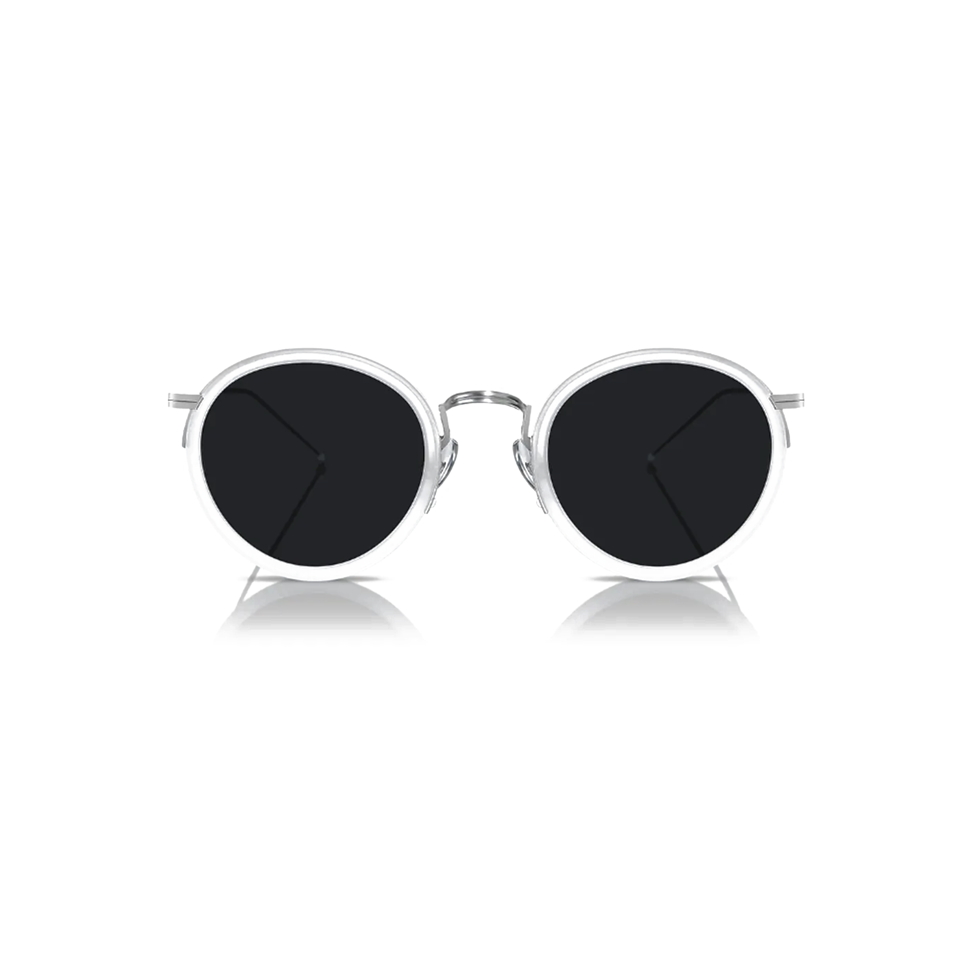The sleek round-frame design and high-fashion white and silver palette create a look that is effortlessly chic and timelessly elegant. The hand finished construction ensures a lightweight yet durable feel, allowing for seamless wear from day to night. Whether you're strolling through the city, attending a stylish brunch, or lounging in a coastal getaway, the Clara sunglasses add an instant touch of sophisticated glamour to any outfit.