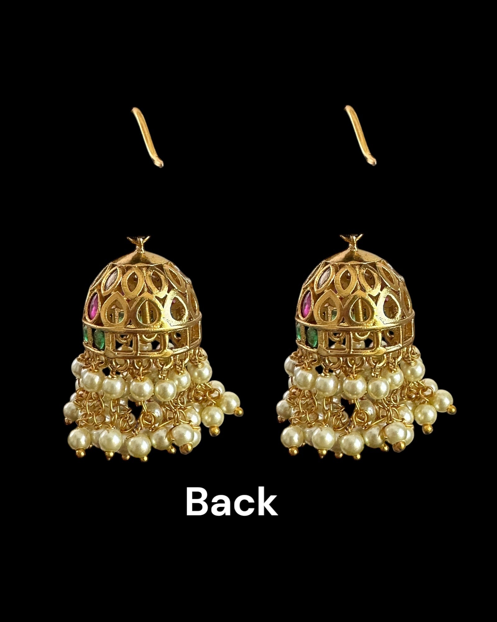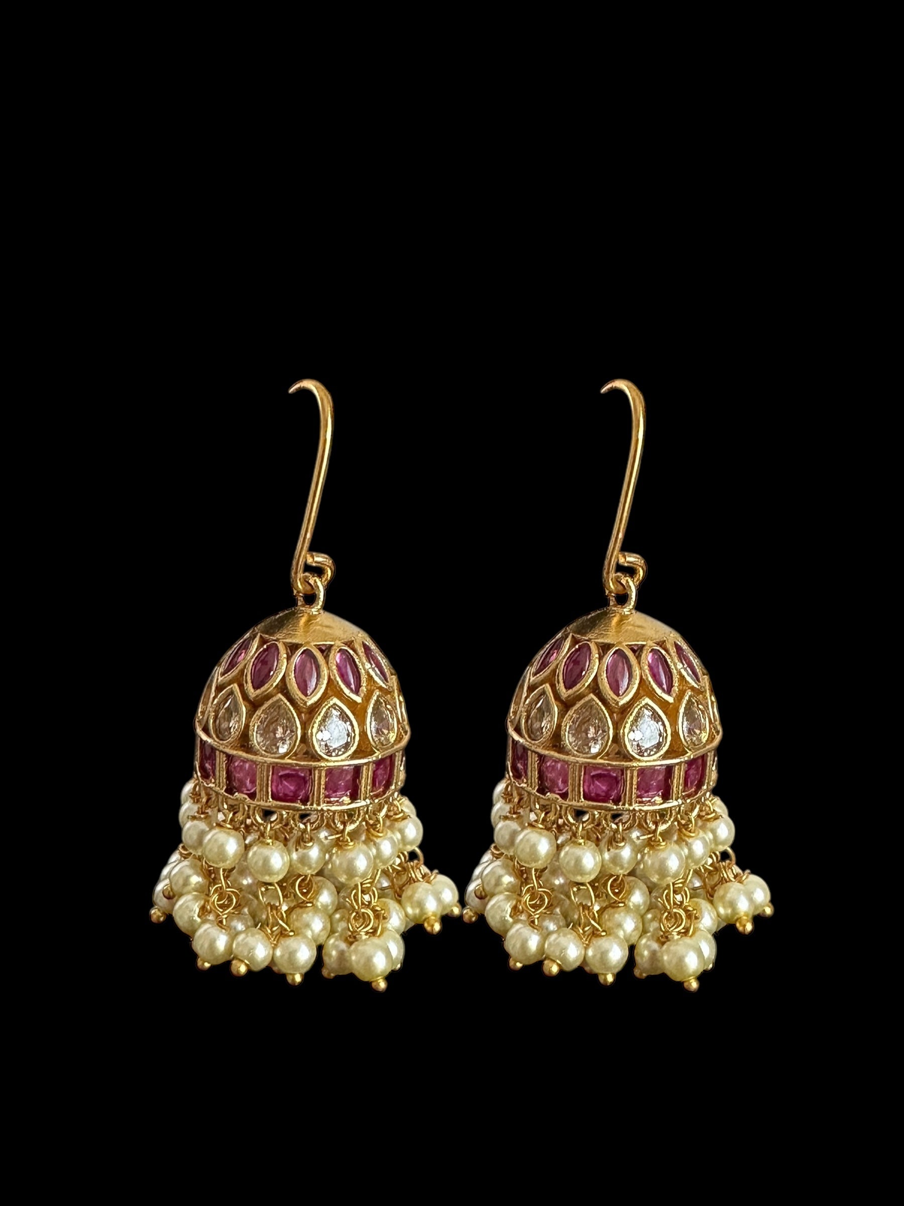 DER774 Gold plated ruby emerald combination jhumka ( READY TO SHIP )