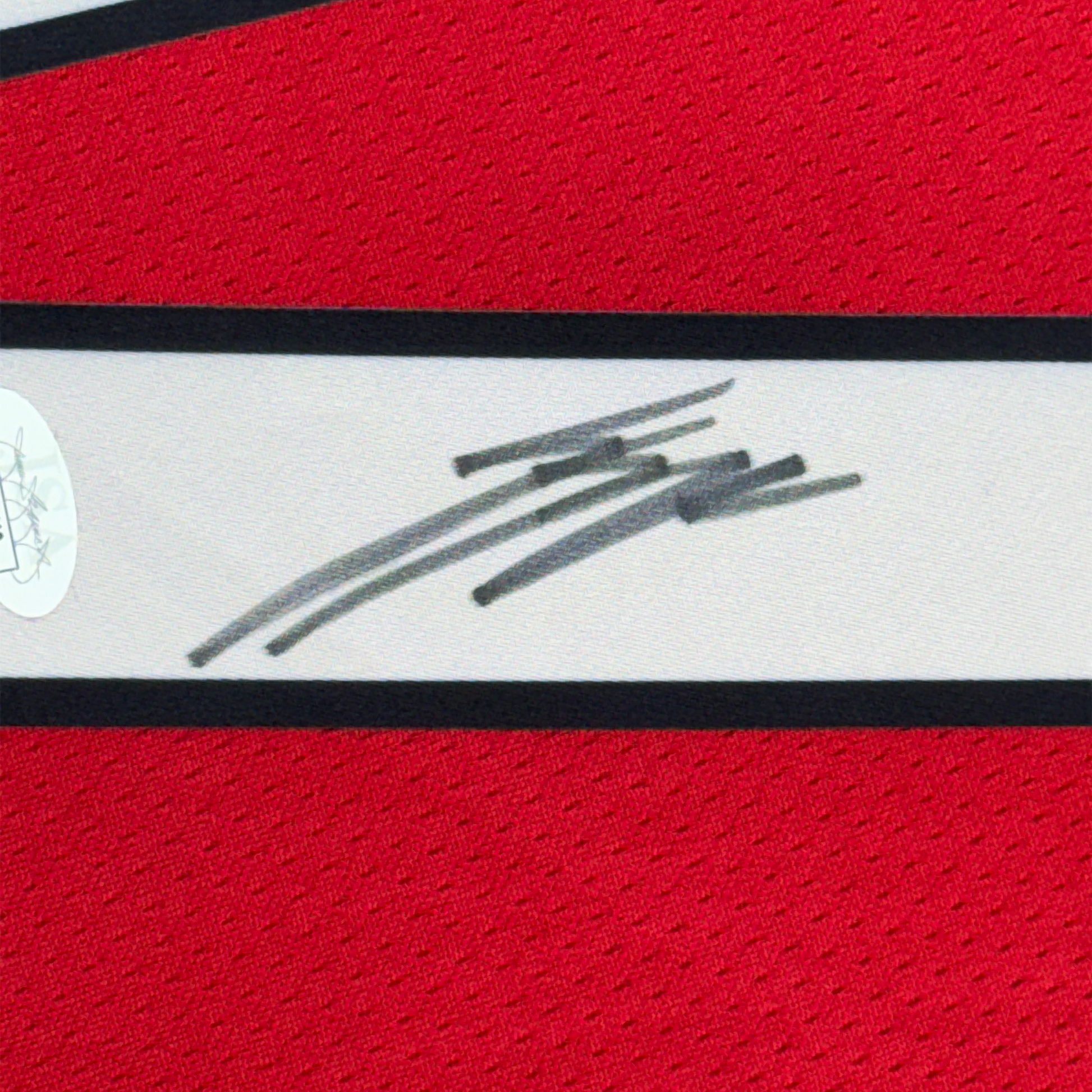Framed Autographed/Signed Shaedon Sharpe 35x39 Portland Red Basketball Jersey JSA COA