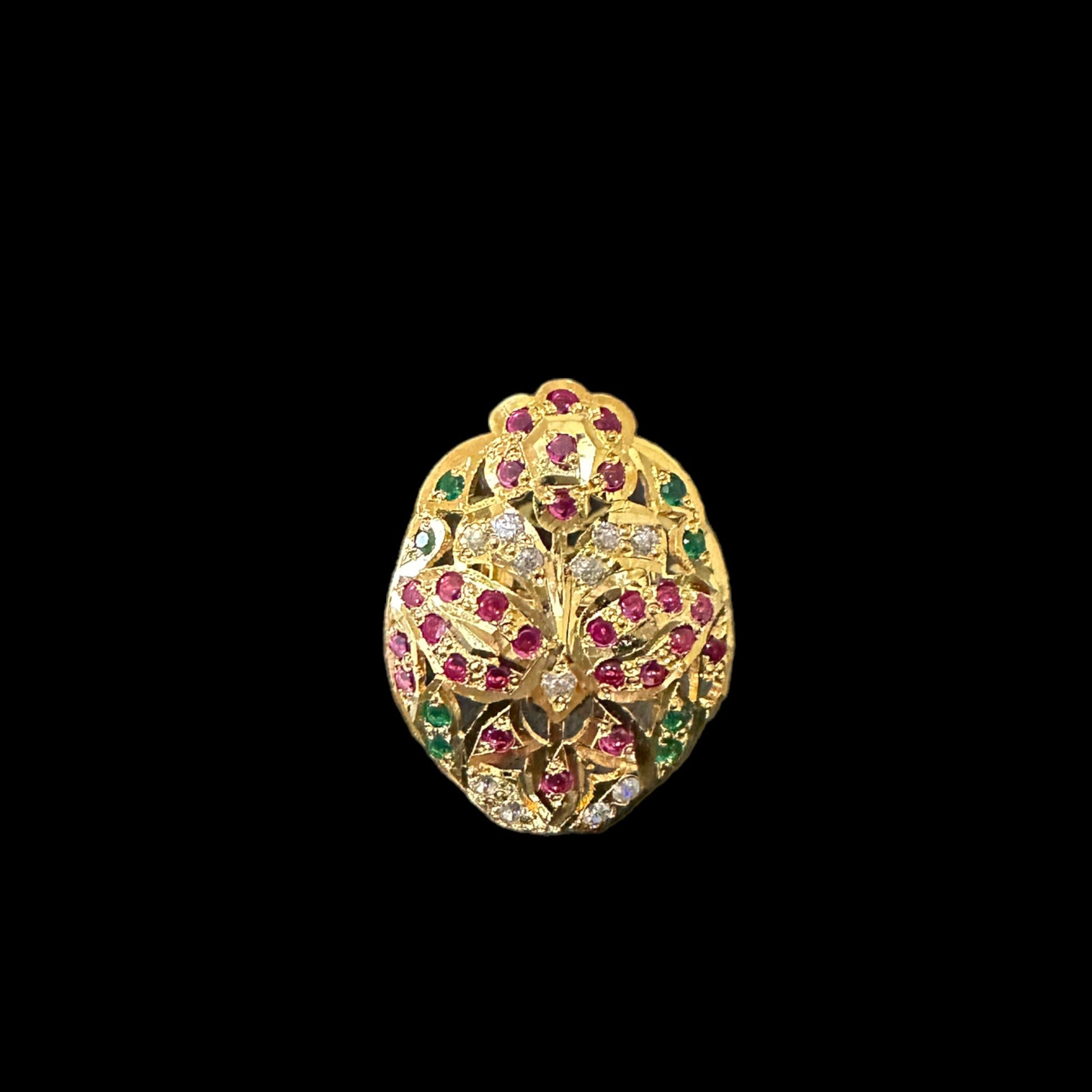 Gold plated silver ring in ruby emerald zircon ( READY TO SHIP )