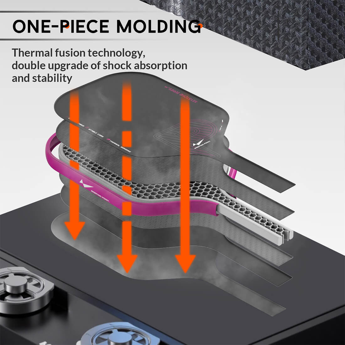 Crafted using advanced hot-press molding technology, pickleball paddle features a seamless unibody design that reduces potential weak points. This construction ensures better energy transfer, reduced vibration, and a crisp, clean feel with each shot.