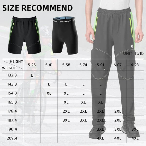 ROCKBROS Men’s 3-in-1 Convertible Cycling Pants with Padded Liner