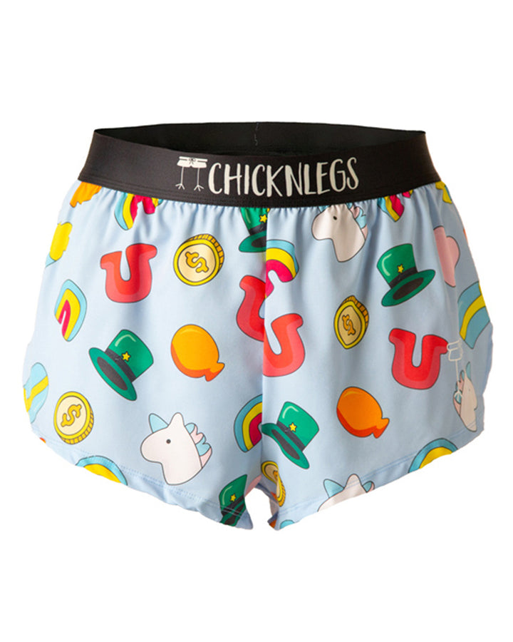 Feelin' Lucky? The ChicknLegs 2" split running shorts are known for their lightweight fabric, ultra soft liners, comfortable waistbands, and funny printed designs.