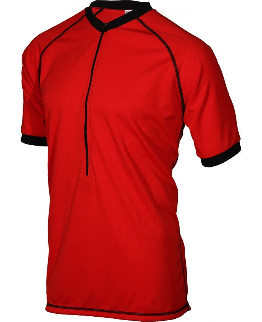 Made out of DrySport wicking polyester keeps you cool and dry. Casual style mountain bike jersey. Crew neck. 15' front zipper. Zippered rear pocket. Contrasting flat seam stitching.
