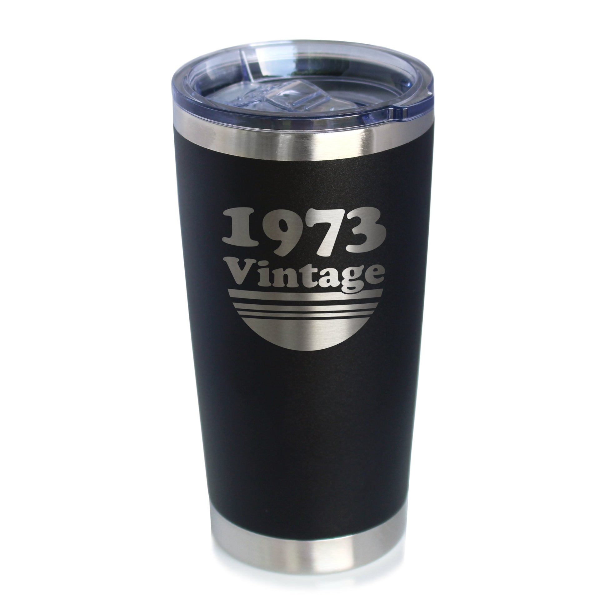 Vintage 1973 - Insulated Coffee Tumbler Cup with Sliding Lid - 20 oz - Funny 52nd Birthday Gift for Women or Men Turning 52