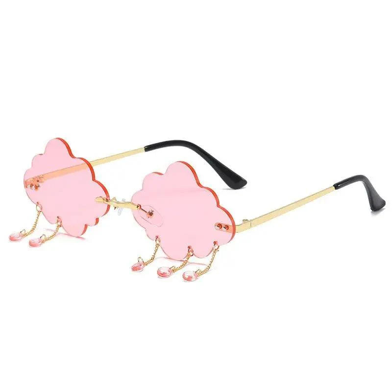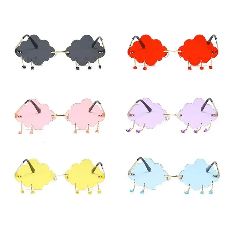 - UNIQUE DESIGN - our cute vintage rimless sunglasses design in the shape of clouds with rain beads tassel, integrated design, punk style, can highlight your personality, cloud shaped glasses for you to adapt to your outfits, while bring you a clear visual effect and make you become more cool and eye-catching
