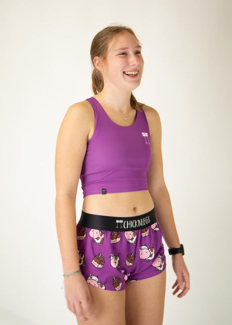 The ChicknLegs PWR Crop Top is known for its lightweight fabric, seamless arm and neck holes, breathable mesh back panel, and funny printed designs.