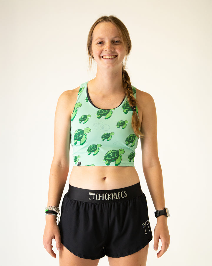 Surf's up, dude. The ChicknLegs PWR Crop Top is known for its lightweight fabric, seamless arm and neck holes, breathable mesh back panel, and funny printed designs.