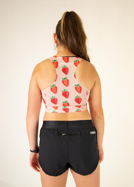 The ChicknLegs PWR Crop Top is known for its lightweight fabric, seamless arm and neck holes, breathable mesh back panel, and funny printed designs.
