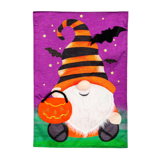 Halloween Gnome Garden Shimmer Linen Flag