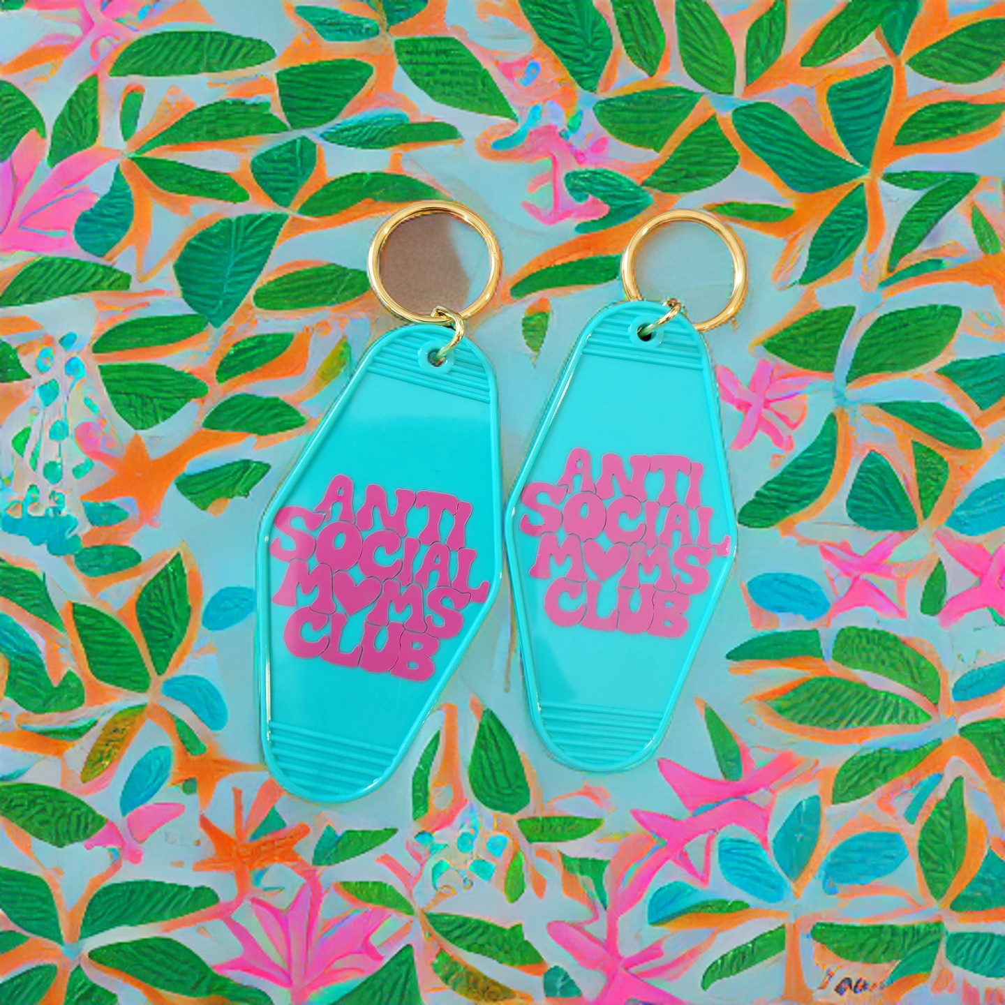 Are you in the Anti-social moms club? This Antisocial Moms Club Motel Keychain is a great way to make a statement! The keychain features an antisocial mom club in pink vinyl on motel key chain in teal. You also have the option of a red keychain with white vinyl. It's a fun and trendy accessory that is sure to make a statement.