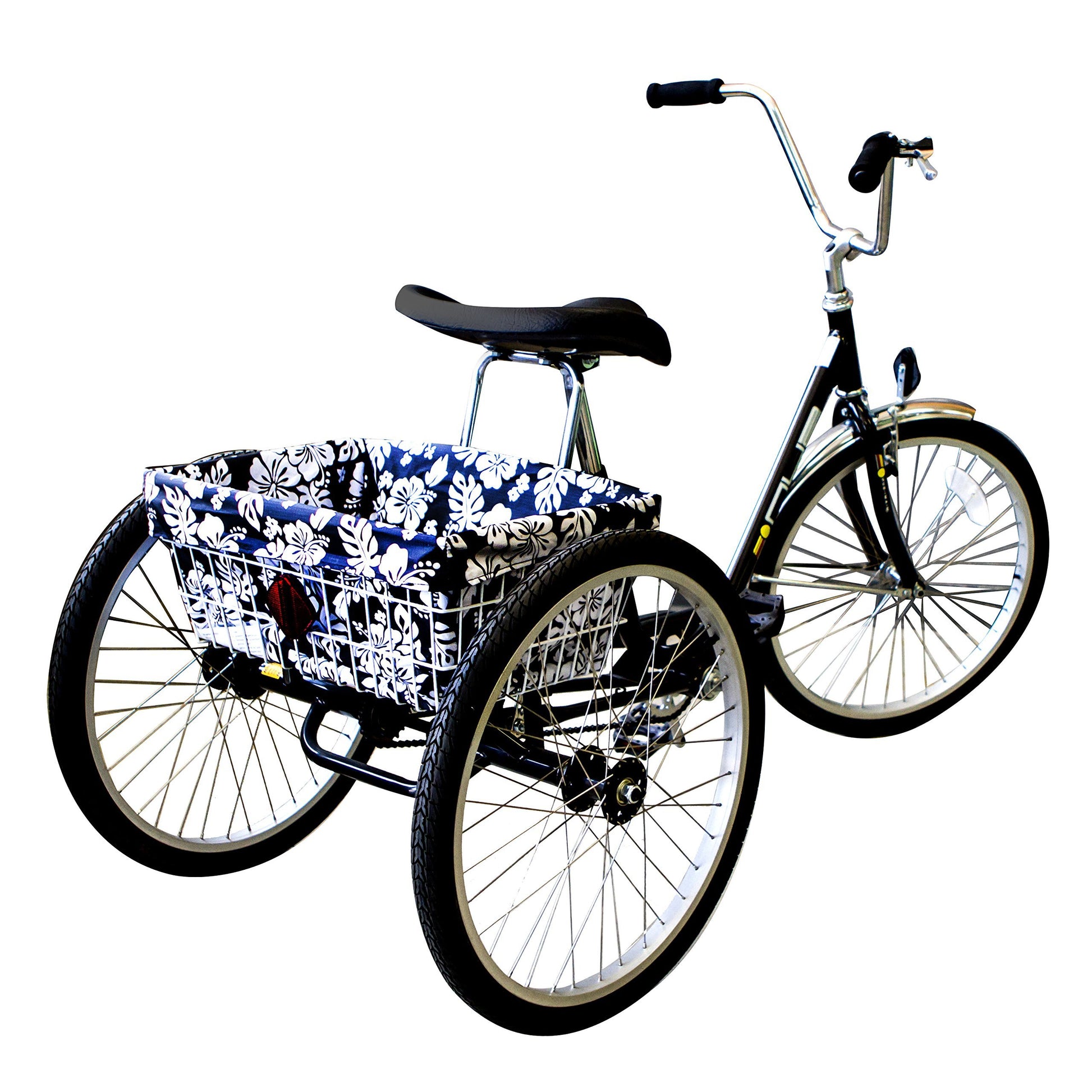 This awesome Bicycle Basket Liner is the Ultimate Adult Trike Bicycle Accessory. All-Weather Friendly, Durable Nylon Rip-Stop Construction, Zippered Closure for Secure Belongings, Easily Cleanable, Clip Lock for extra security, Steel Grommet Rain-Drains. Designed in Huntington Beach, California. Extra large basket liner for adult trikes Fits baskets up to 23'' x 17'' x 11'' Compatible with KHS, Schwinn, Torker, and Wilson bicycles