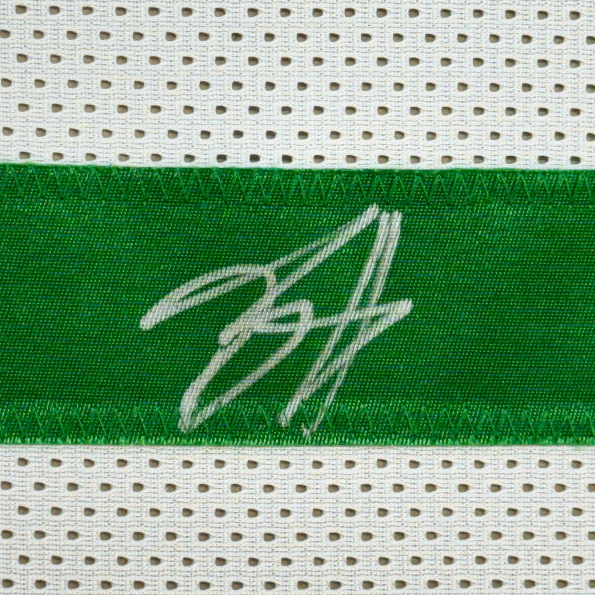 Framed Autographed/Signed Breece Hall 35x39 New York White Football Jersey JSA COA