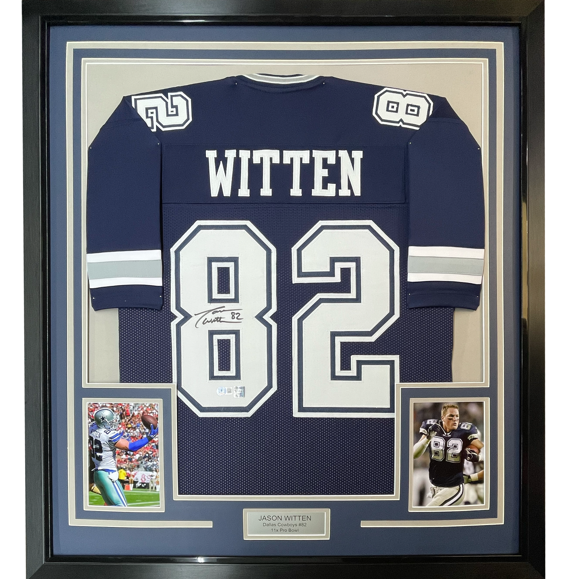 Framed Autographed/Signed Jason Witten 35x39 Dallas Dark Blue Football Jersey Beckett BAS COA