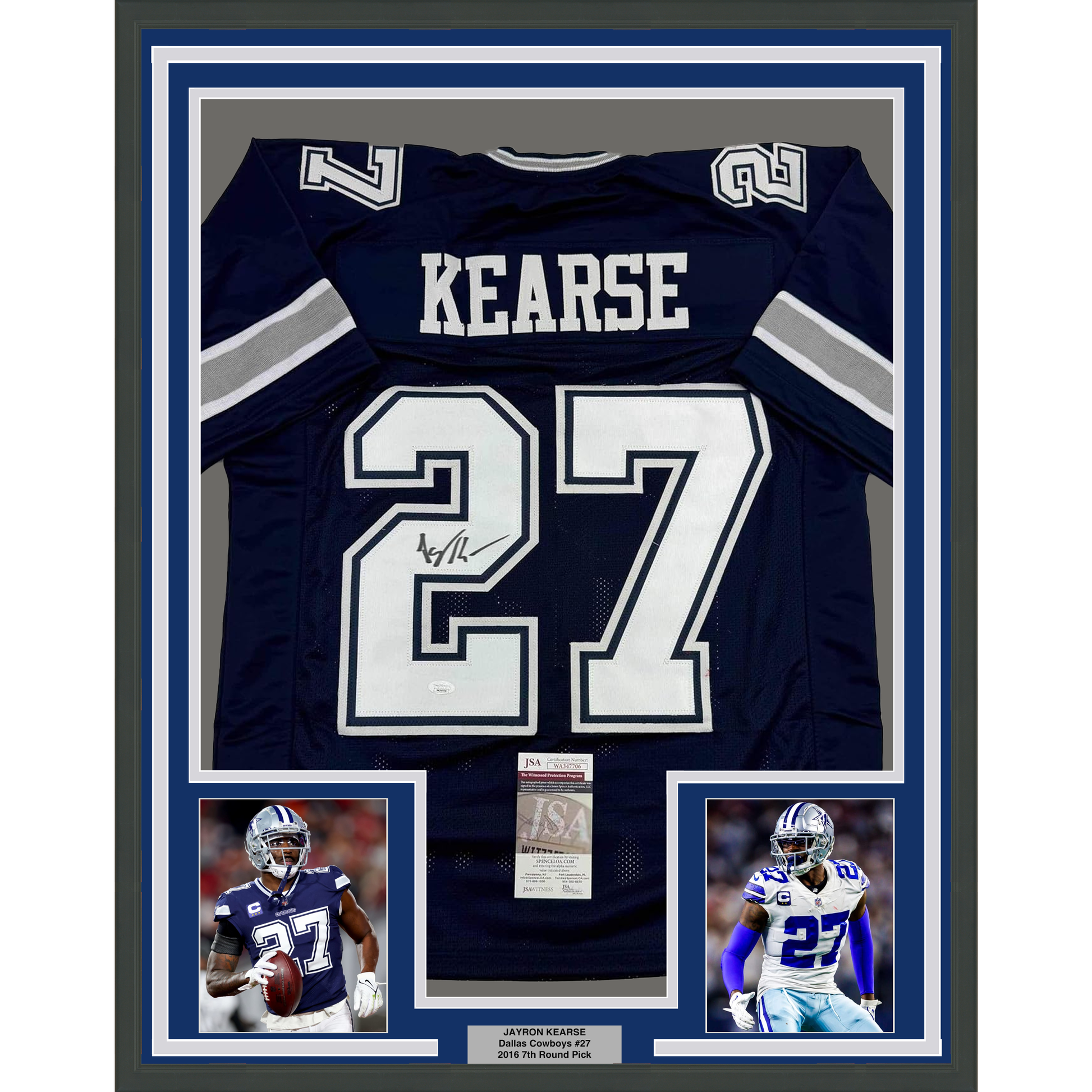 Framed Autographed/Signed Jayron Kearse 35x39 Dallas Blue Football Jersey JSA COA