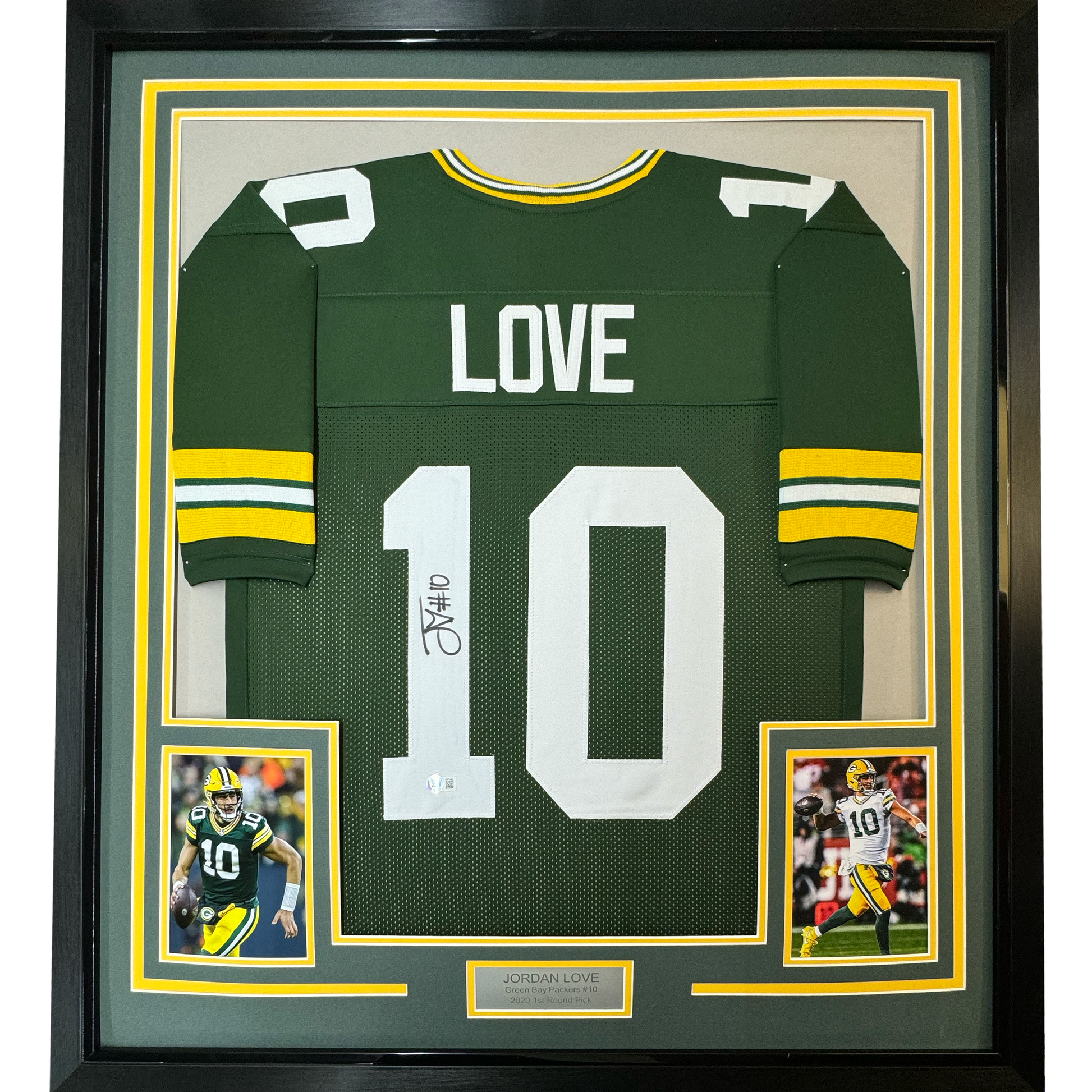 Framed Autographed/Signed Jordan Love 35x39 Green Bay Green Football Jersey Beckett BAS COA