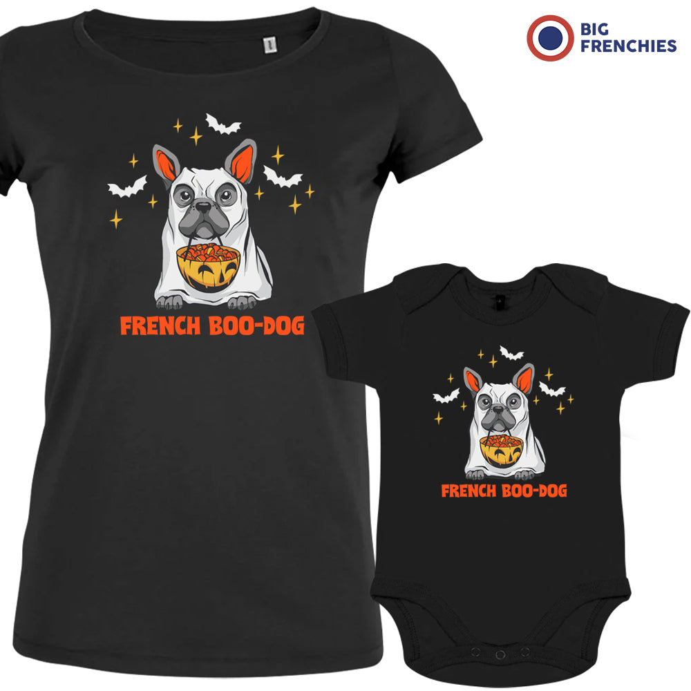 French Boo-Dog Halloween Mom and Baby Organic Cotton family Set (Set of 2)