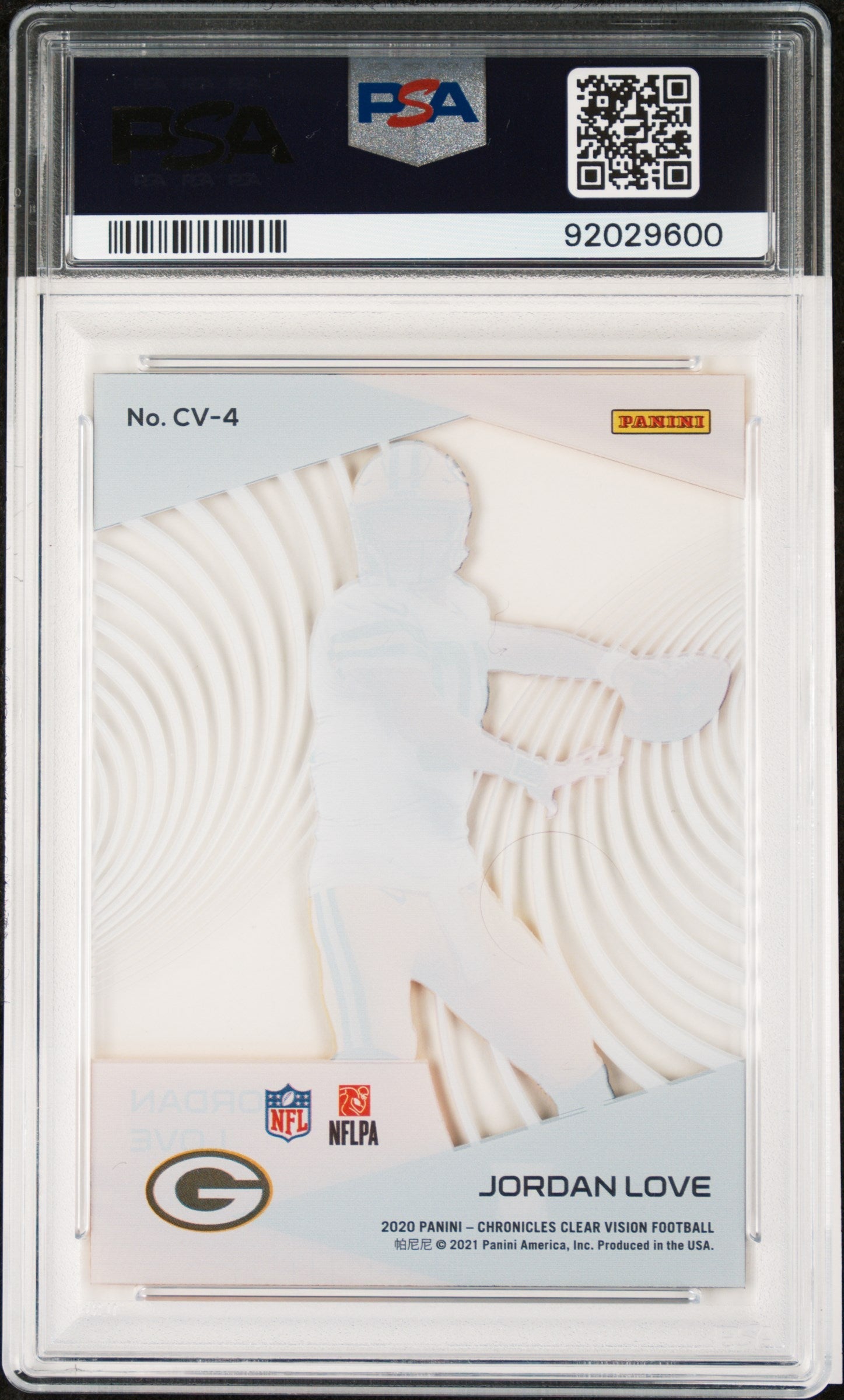 Graded 2020 Panini Chronicles Jordan Love #CV4 Clear Vision Rookies Rookie RC Football Card PSA 10 Gem Mint