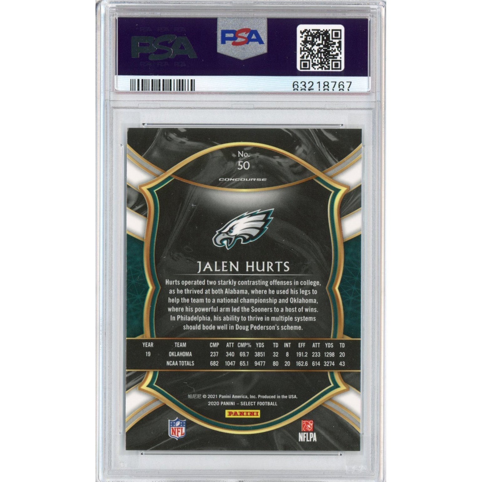 Graded 2020 Panini Select Jalen Hurts #50 Rookie RC Football Card PSA 10 Gem Mint