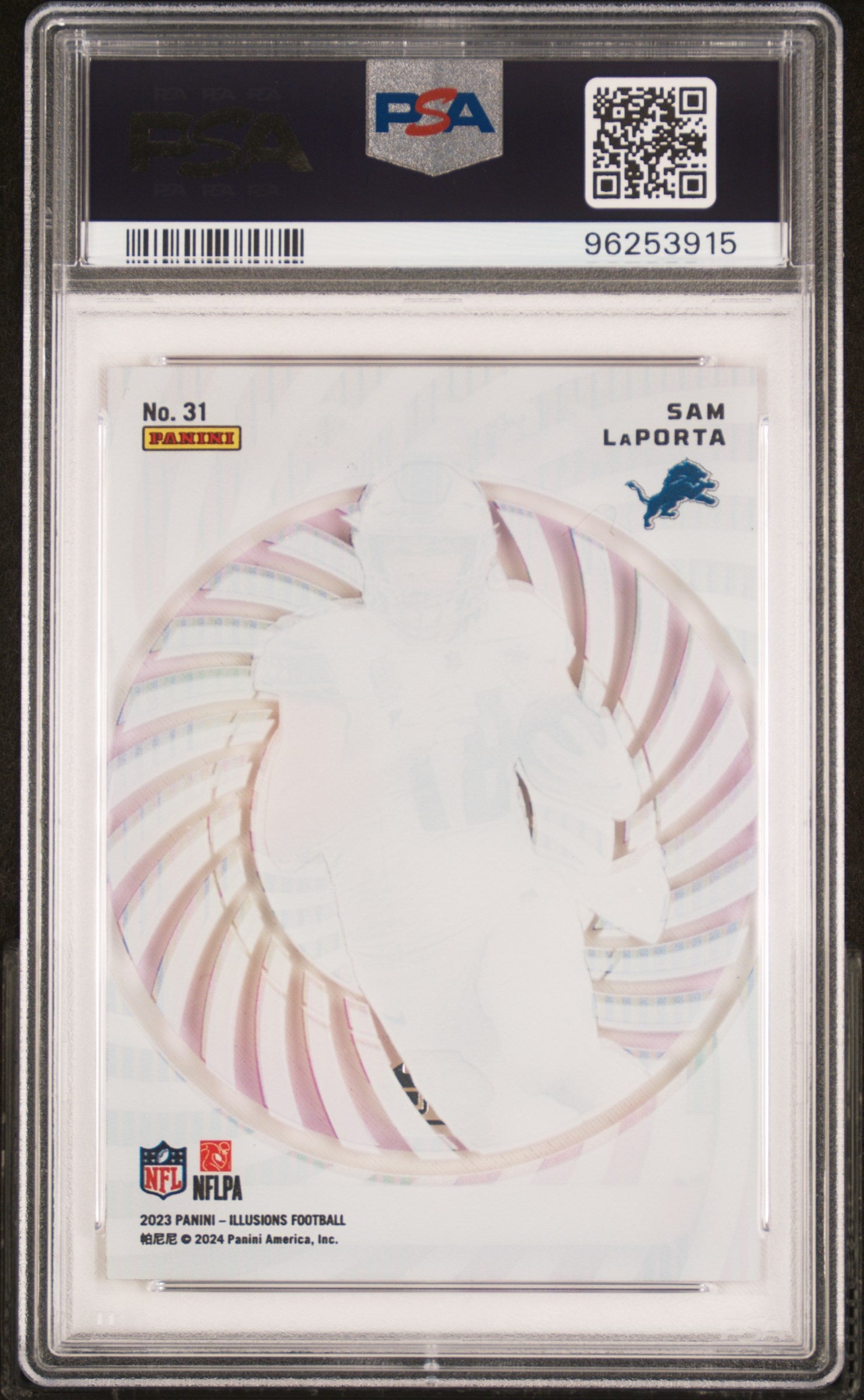 Graded 2023 Panini Illusions Sam LaPorta #31 Mystique Rookie RC Football Card PSA 10 Gem Mint