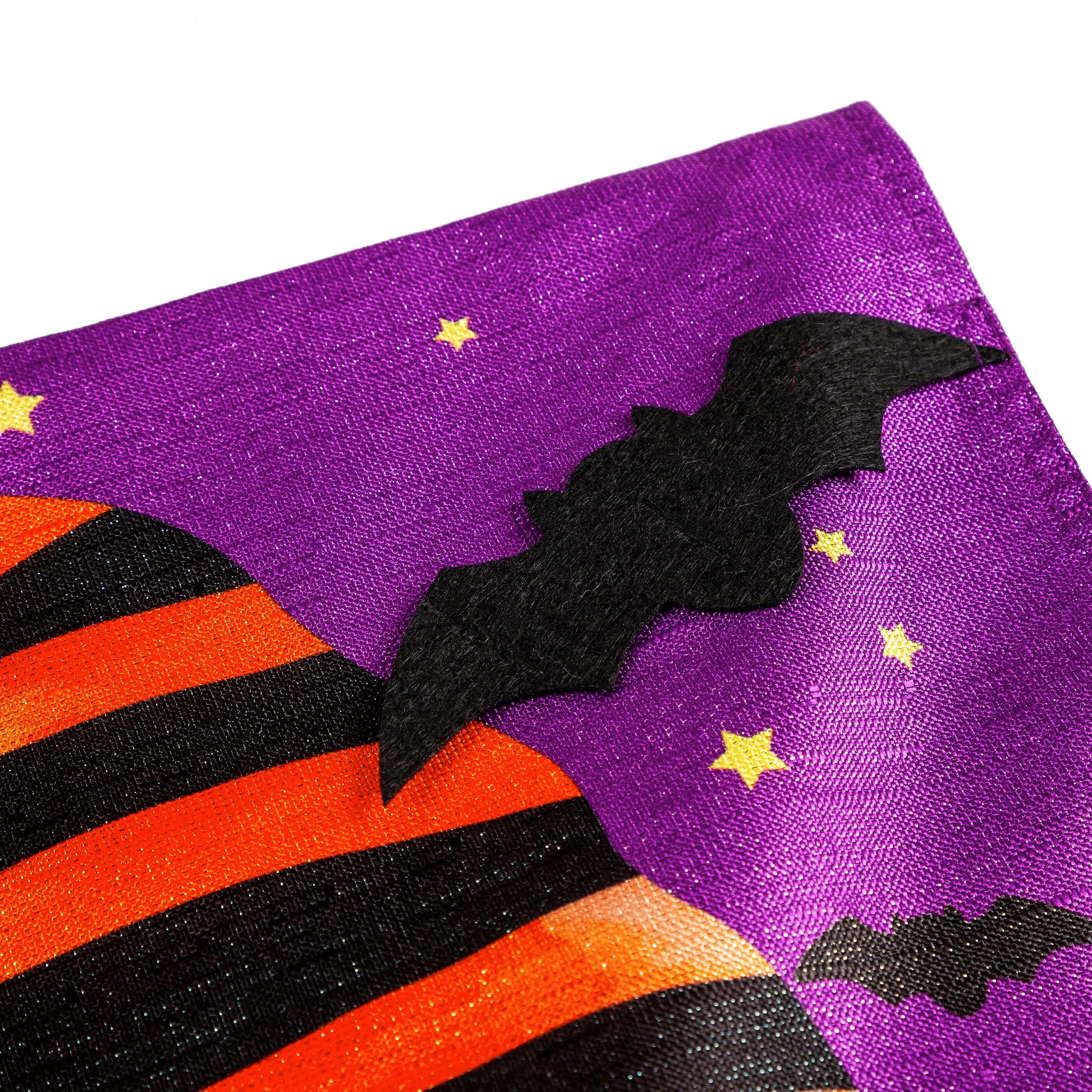 Donning a striped witch hat and holding a jack-o-lantern, this endearing gnome is bursting with Halloween spirit on this linen garden flag. Display during the Halloween season for a stunning display that also adds a whimsical touch to your outdoor space. The shimmering linen material illuminates in the sunshine and textured bat accents bring this garden design to life. Made of lightweight, durable linen material, this lively flag is designed to withstand a variety of weather conditions. Our flag creation process involves combining pieces of fade-resistant fabric with tight, detailed stitching in order to create a dimensional effect. Printed ink colors are protected with a watertight seal, so you can enjoy your flag for years to come.
