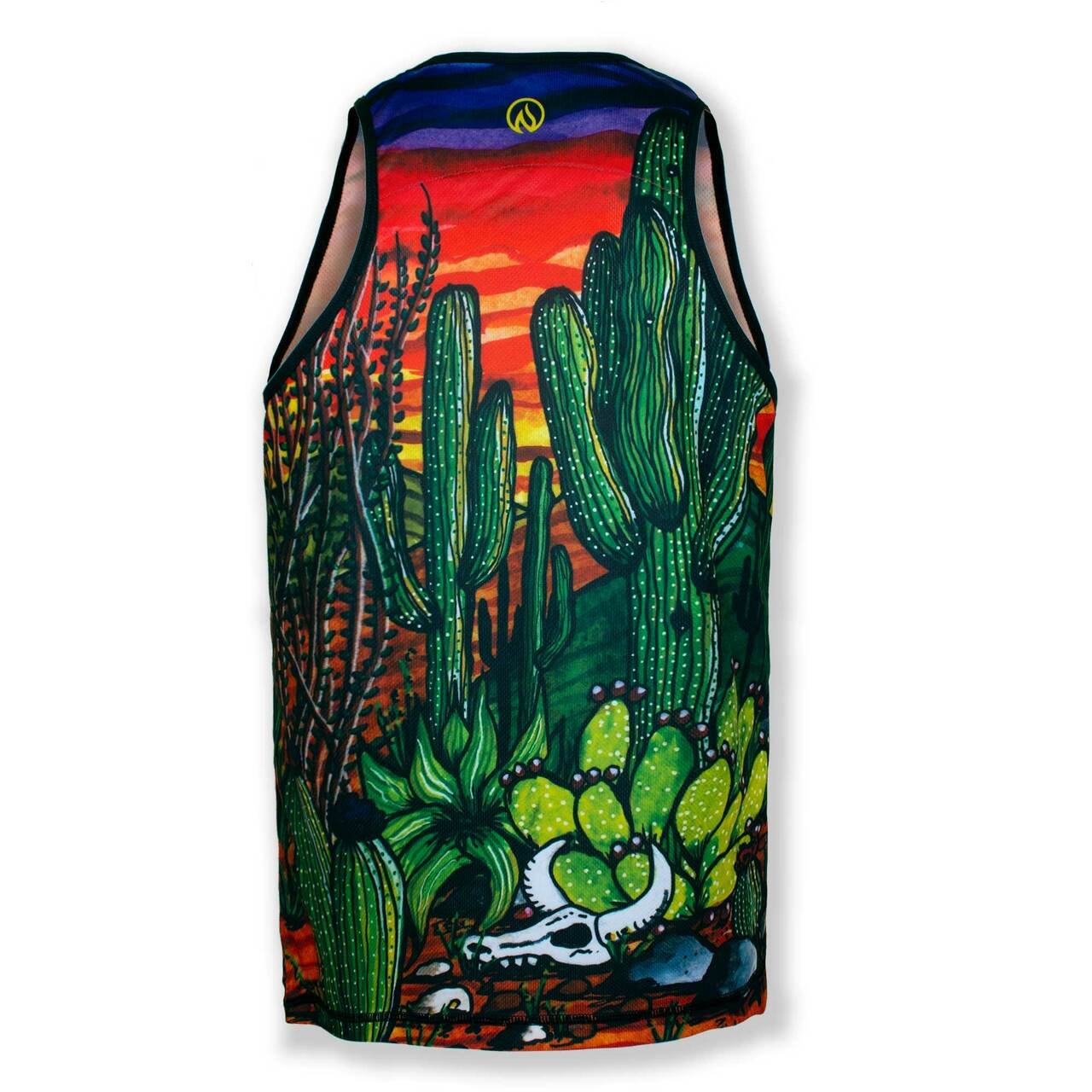 The Desert Sunset Singlet was painted by ultra runner and artist, Heidi Garner, who loves vibrant color as much as we do! This light-weight, race-cut singlet is designed for speed, but also works well as a cool, kick-back summer top that won't show sweat! Vibrant art you can’t feel, on its super-light, moisture-wicking Dry I.C.E. Fabric.  100-Mile tested by ultra runners for comfort at extreme distance and a unique, head-turning design.