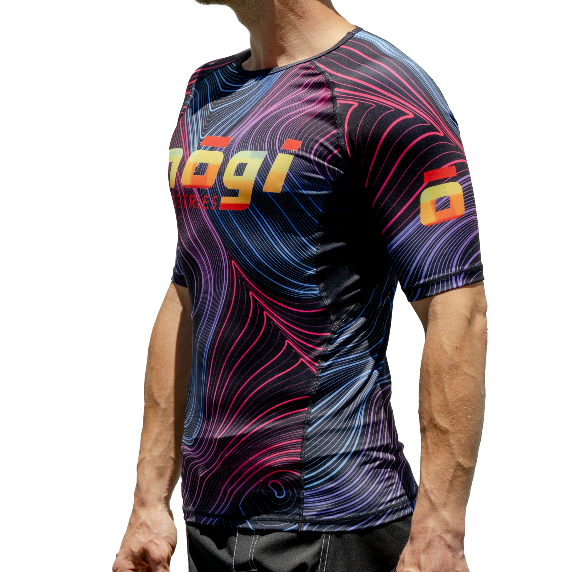 This rash guard’s name is kinda fancy. It comes from Terra Colares, which means earth colors in Latin. But what good is fancy if it’s not also functional? Enter Kolaris, Terra Colares’ easier (to pronounce) brother, looking smooth like a rolling sesh that’s in flow. The topographic map design swirls in neon blues, purples, and reds against an expanse of unchartered black territory – like all the belt colors and stripes you might want to level up to. It’s a tough climb to the top, but this rash guard’s got you covered the second you start your warm up shrimp drills. As with any terrain worth conquering, expect to be mercilessly tested. Just when you’ve finally learned to tackle one beast, a tougher one appears. Maybe you finally nailed opening your opponent’s closed guard and landing that side-mount after three months of practice. Enter its tricky and more versatile cousin, open guards. You might get cocky, thinking open guards are easier to pass, but then your opponent pulls out a Single Leg X to take control. Next thing you know, you’re dealing with a fun factory of sweeps and chokes. It’s torturous and exhausting, but you’re not here to play it safe or easy (let’s be real, part of you wears that pain like a badge of honor). You’re here to step up and take what’s yours, all while being fancy and functional, Kolaris style..