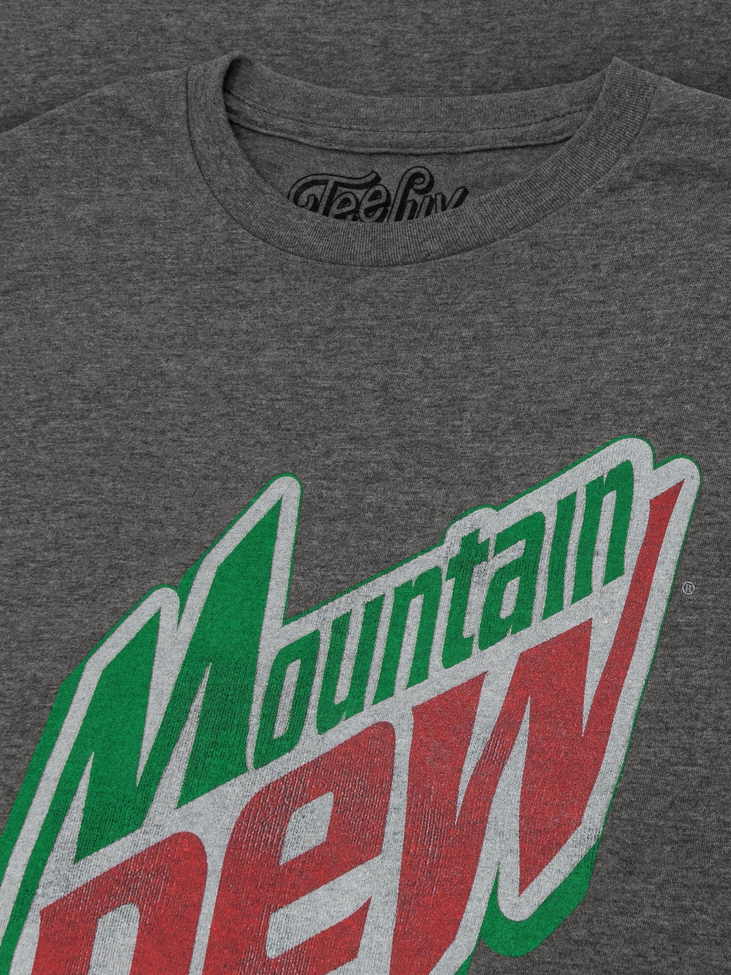 Mountain Dew's logo may have changed several times since the 1940's, but that crisp and refreshing taste has always remained. Our team picked the familiar 90s Mt Dew logo, and gave it a distressed, faded look. To complete the retro feel - we’ve printed it on the highest quality, poly-cotton graphite gray heather t-shirt around.