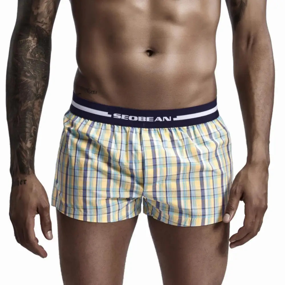 SEOBEAN Classic Plaid Mens Boxer Shorts 100% Cotton Underwear Boxershorts