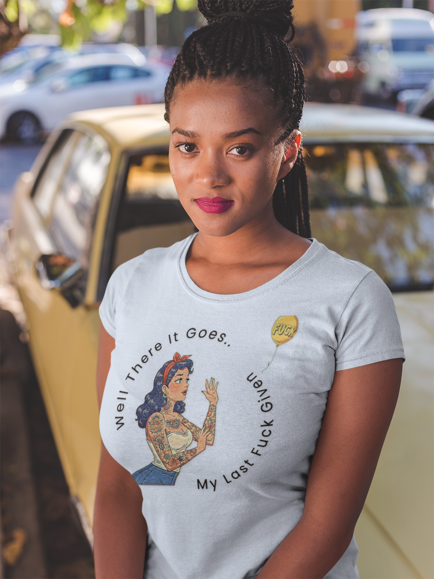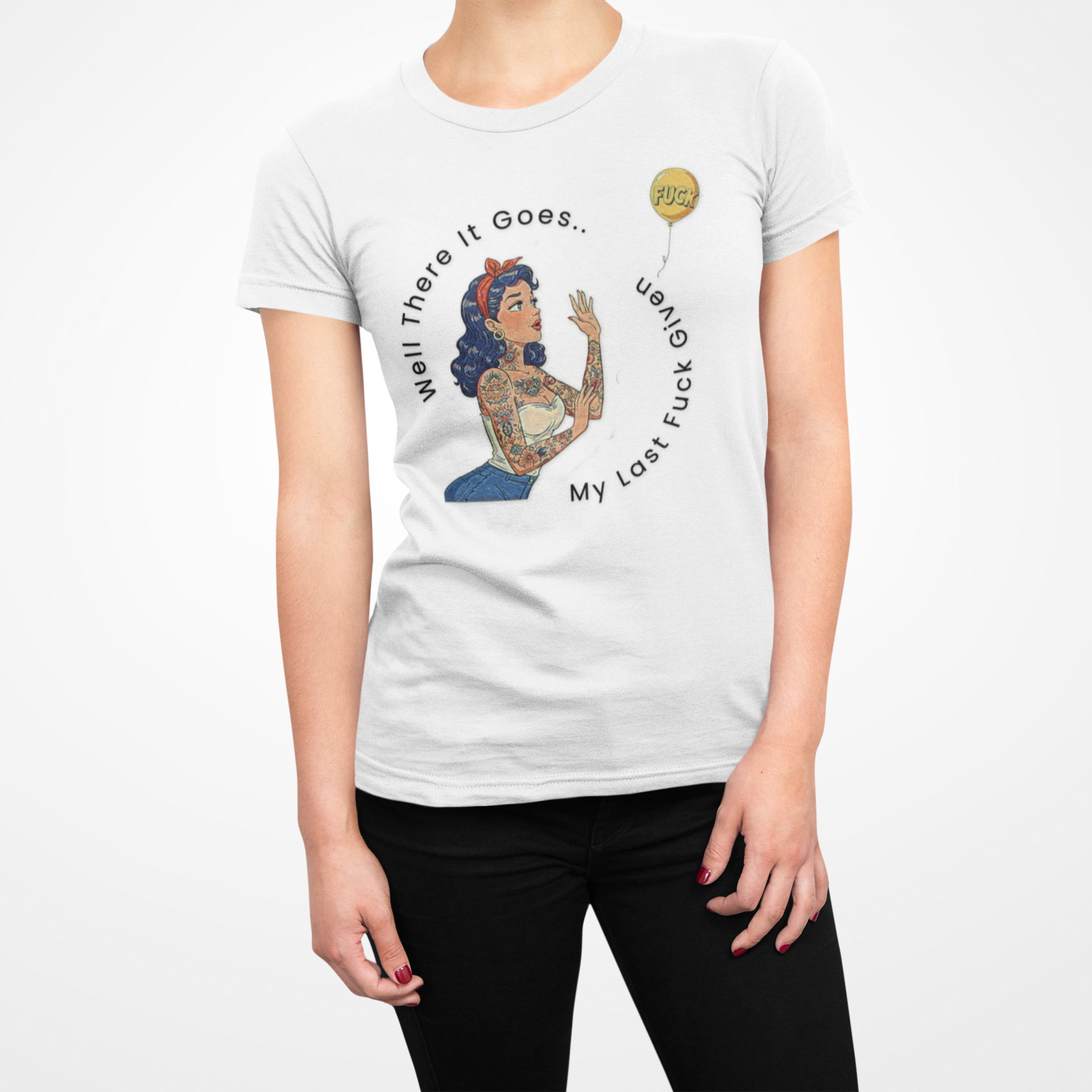 Say goodbye to your inhibitions with our "There Goes My Last Fuck" Graphic Tee. This feminine-cut soft style tee flaunts shorter sleeves that daringly showcase your shoulders. Crafted from 100% ring spun cotton in solid colors, it's built to make a statement and last. Twill-taped shoulders add durability while the ribbed knit collar keeps its shape wear after rebellious wear.