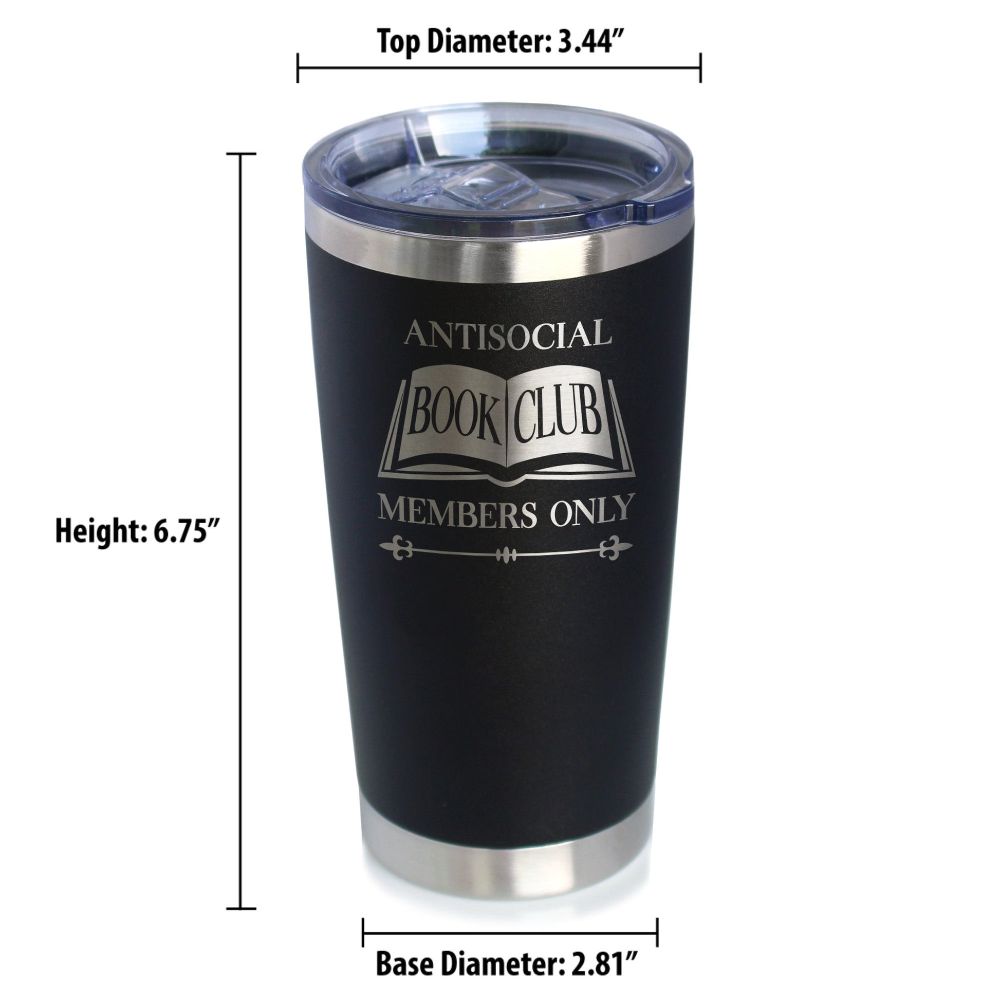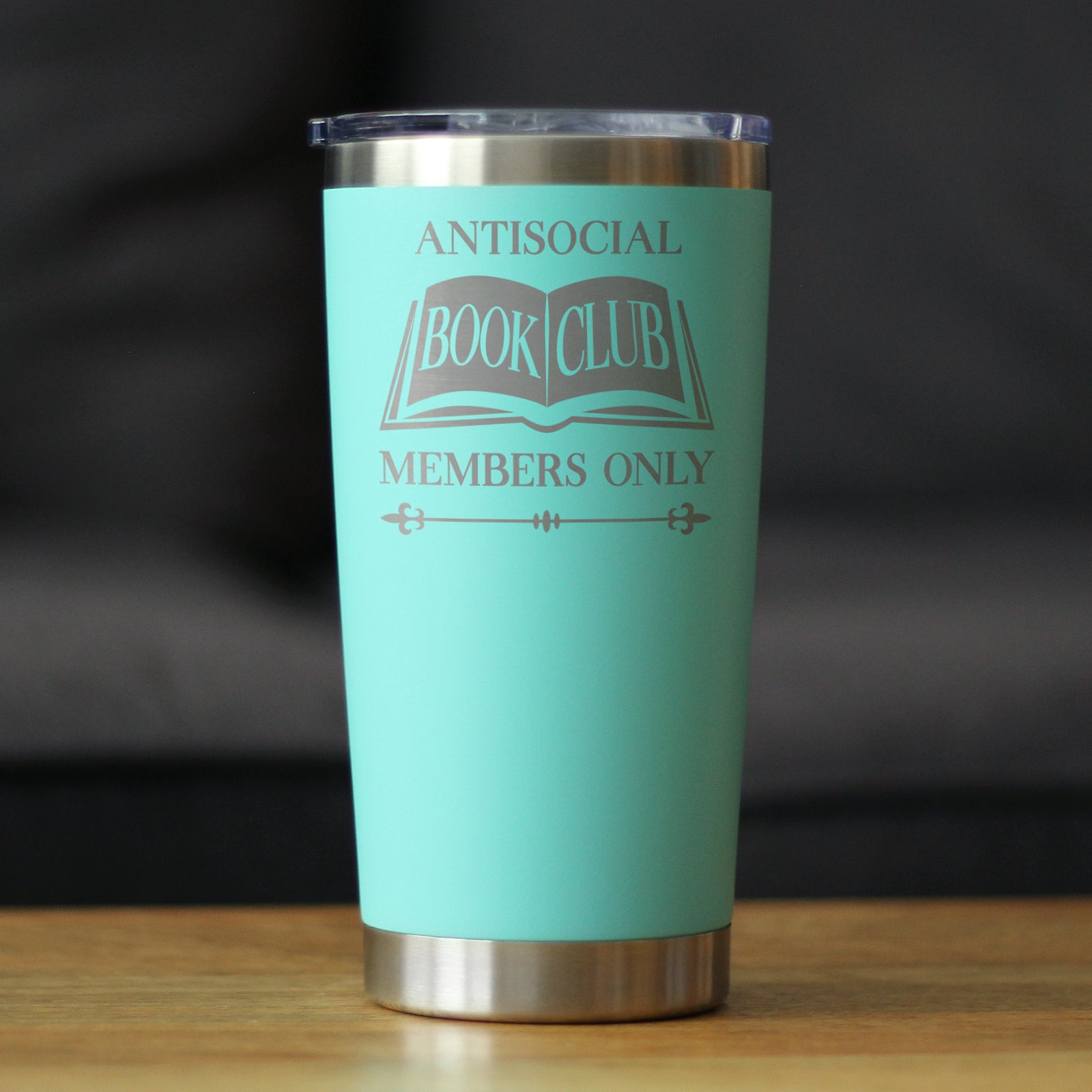 Antisocial Book Club Insulated Coffee Tumbler with Sliding Lid Gifts for Exclusive Book Clubs 20oz Stainless Steel Tumbler