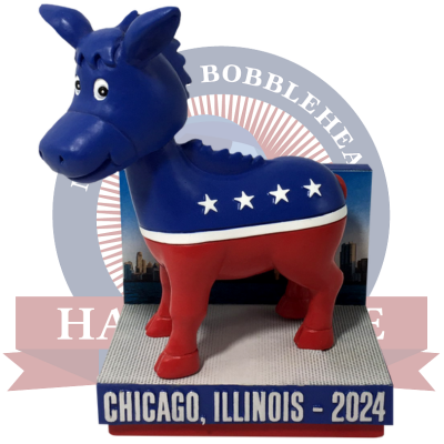 This bobblehead features the Democratic Donkey with "Chicago, Illinois - 2024" on the front of the base. The 2024 Democratic National Convention (DNC) is being held in Chicago from be held in Chicago from August 19th through August 22nd, 2024.