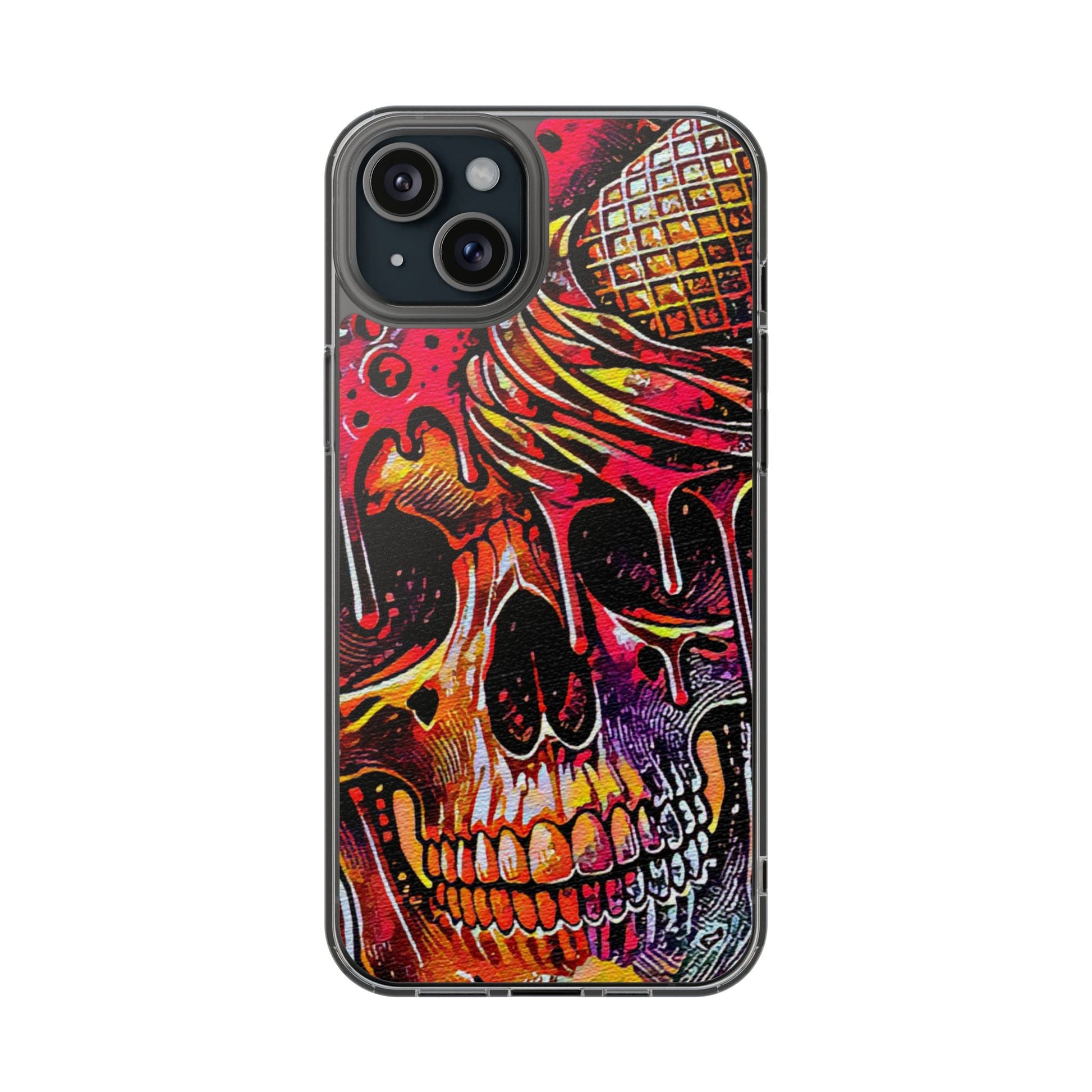 Take a risk with this Neon Ice Cream Skull Clear Phone Case! It provides both protection for your phone's surface and a visually appealing aesthetic. The flexible, crack and chip-resistant crystal clear polycarbonate case is co-molded with TPU cushioned edges for an extra layer of safety. Say goodbye to minor bumps and scratches while maintaining your phone's sleek profile. With open ports for easy connectivity and 3D sublimation printing, your designs will come to life in bold, bright colors with photo-realistic detail, and anti-yellowing protection for lasting freshness.