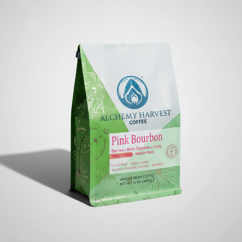 From the lofty heights of Santuario, Risaralda at 1800 MASL, this magical lot from Finca El Rubí is cultivated by producer Sergio Londoño. Featuring the vibrant Pink Bourbon varietal and processed using the honey method, this coffee is infused with a touch of alchemical wonder and aromatic charm.