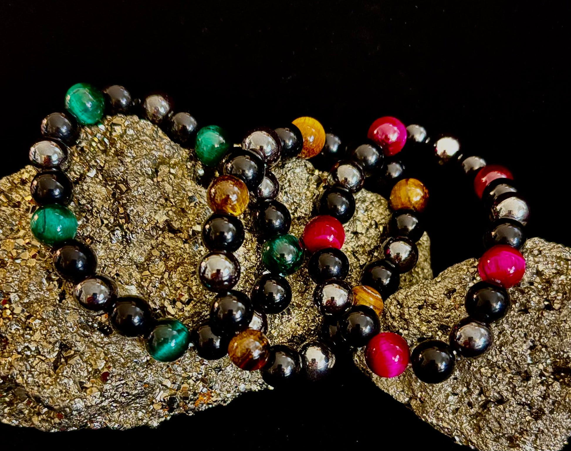 Discover the power of intention with our 10mm Protection Energy Bracelets, available in bold Red, earthy Tiger Eye, and vibrant Green colorways. Crafted with high-quality black obsidian, metallic hematite, and cat eye stones, these bracelets aren't just stylish—they’re designed to balance energy, boost confidence, and protect your aura.