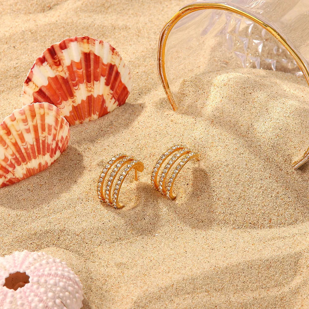 Stainless Steel Inlaid Zircon C-Hoop Earrings